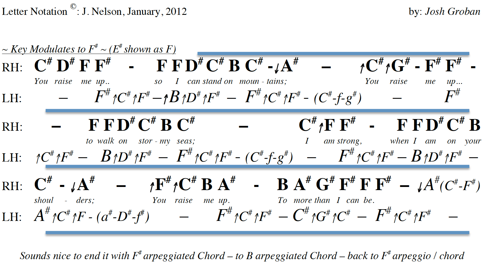 You Raise Me Up Josh Groban Lyrics And Notes For Lyre Violin Recorder Kalimba Flute Etc